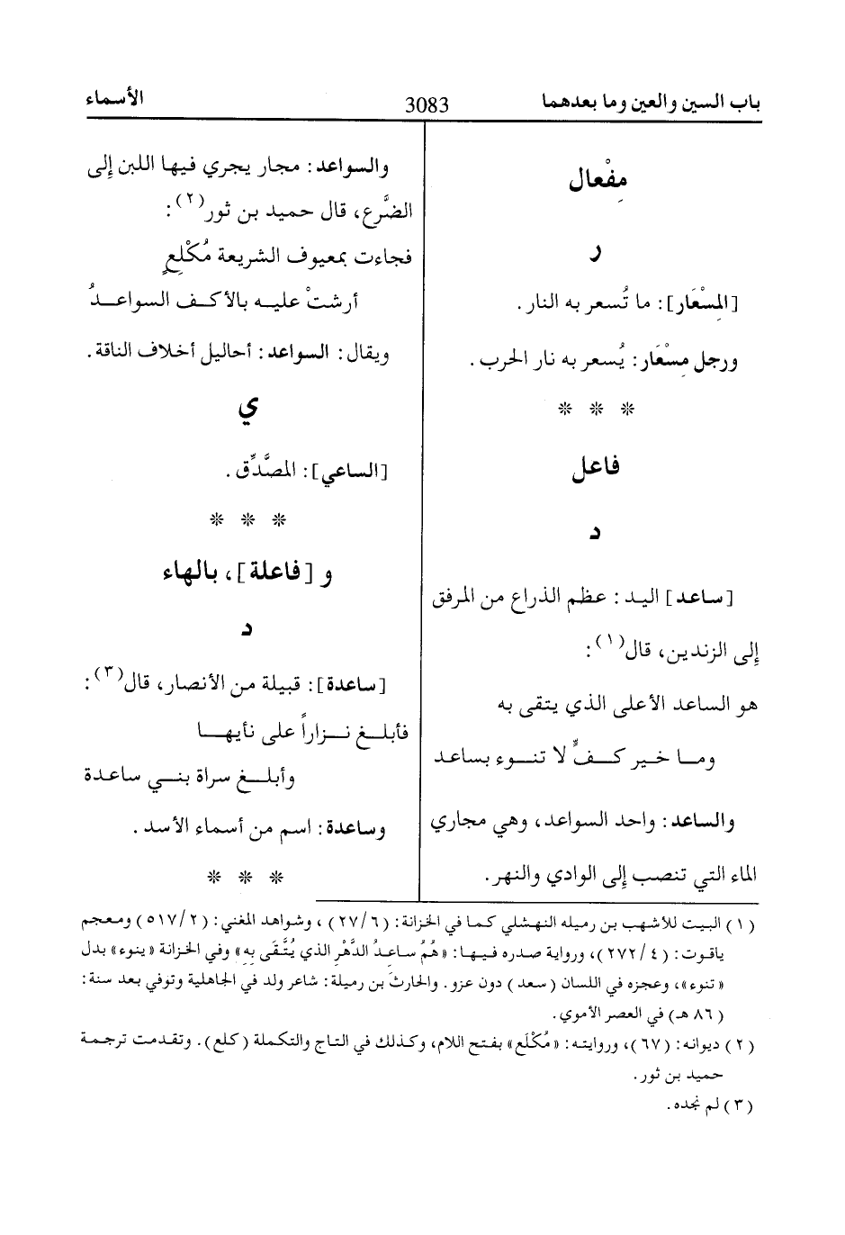 [ساعد] اليد: عظم الذراع من المرفق إِلى الزندين، قال «1»:
