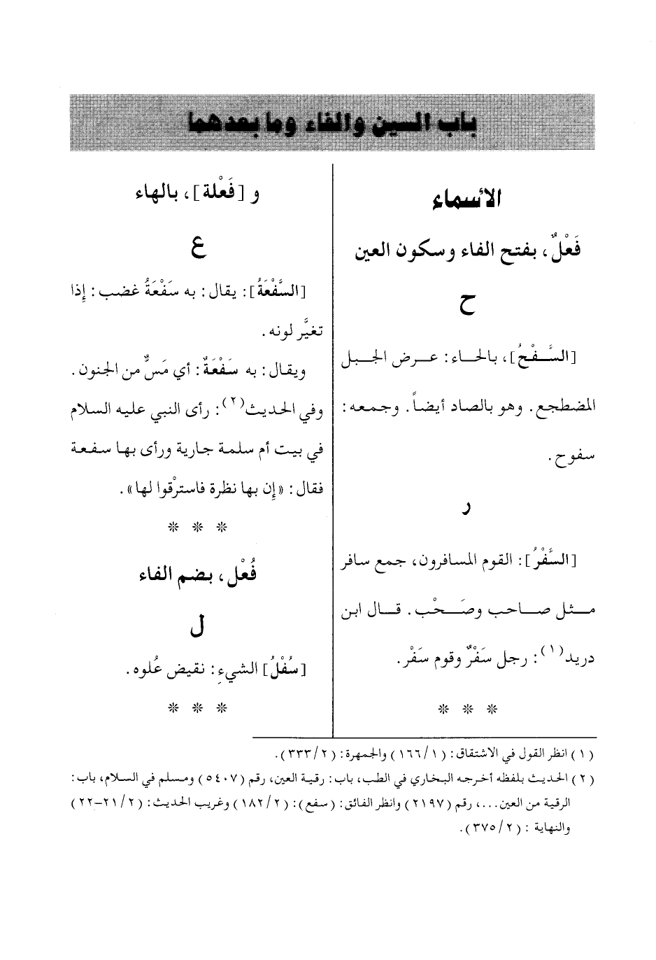 الرقية من العين ... ، رقم (2197) وانظر الفائق: (سفع): (2/ 182) وغريب الحديث: (2/ 21 - 22) والنهاية: (2/ 375).