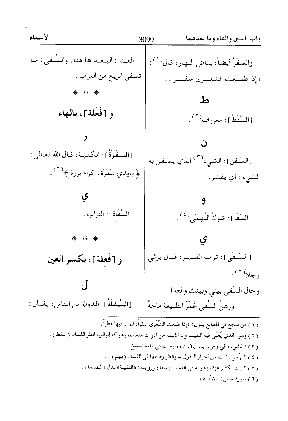 [السَّفَرَةُ]: الكَتَبة، قال الله تعالى: