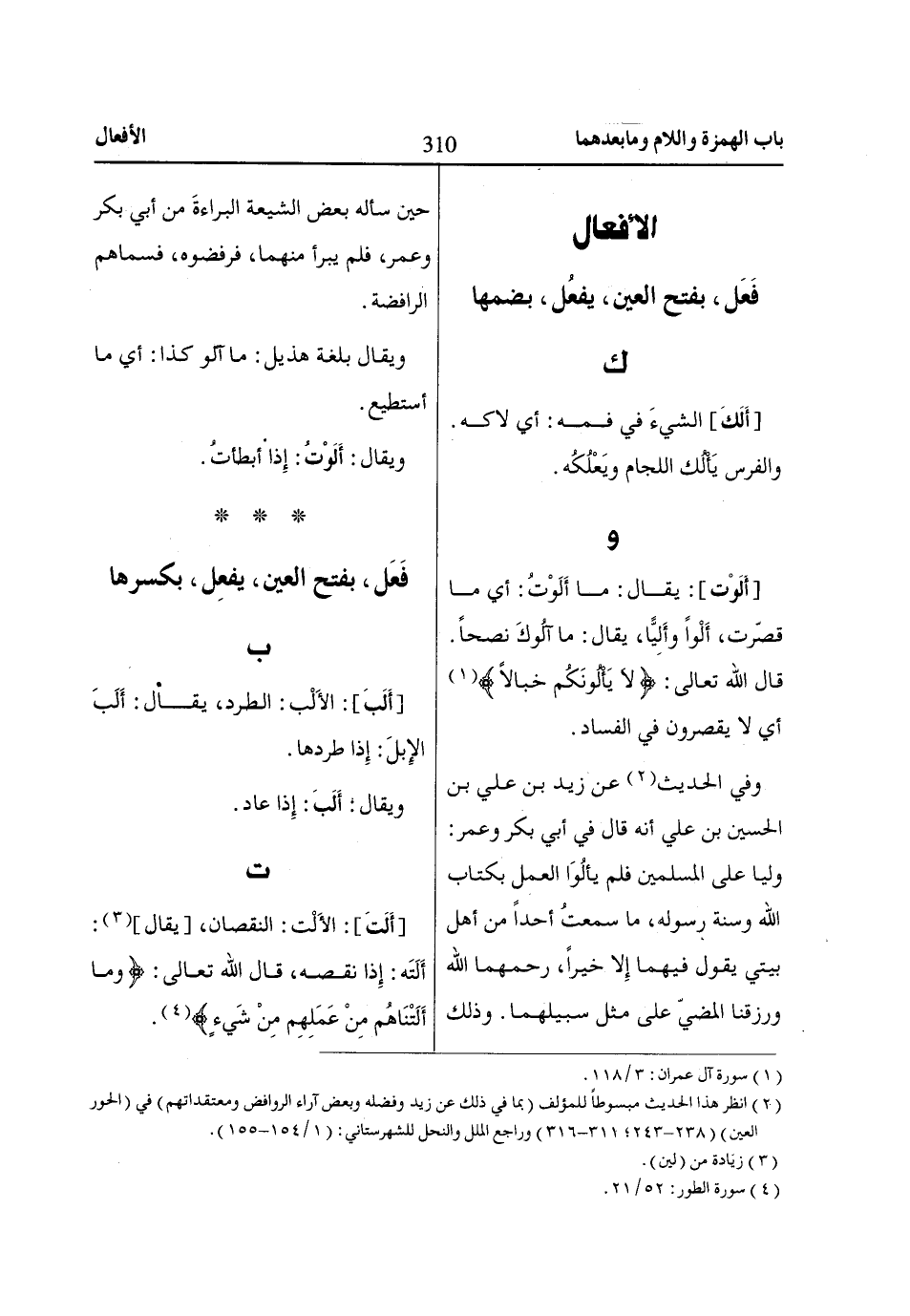 [أَلَتَ]: الأَلْت: النقصان، [يقال] «3»: