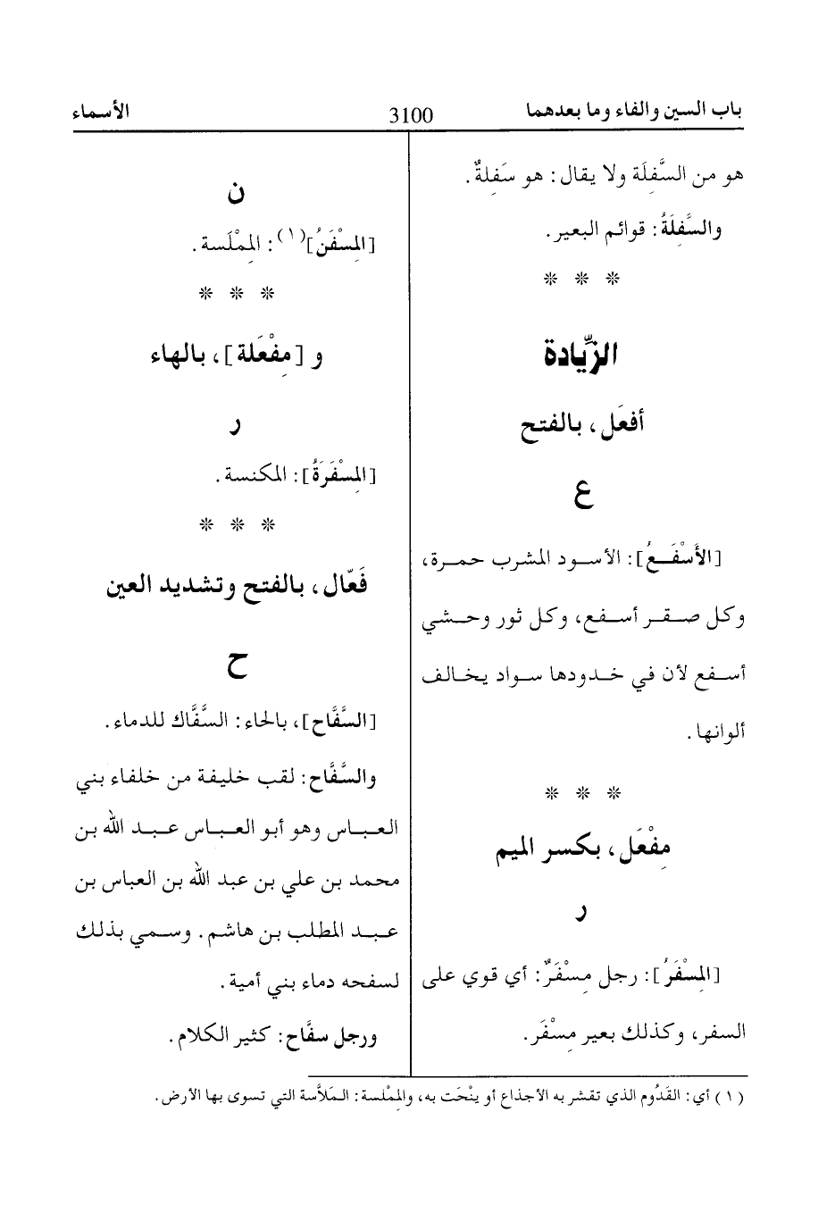 [المِسْفَرُ]: رجل مِسْفَرٌ: أي قوي على السفر، وكذلك بعير مِسْفَر.