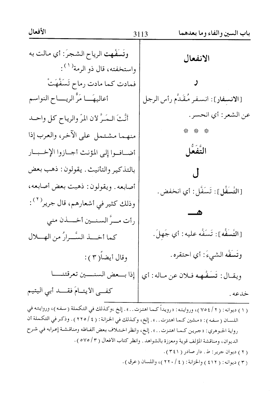 إِلخ، وكذلك في التكملة (سفه)، وروايته في اللسان (سفه):