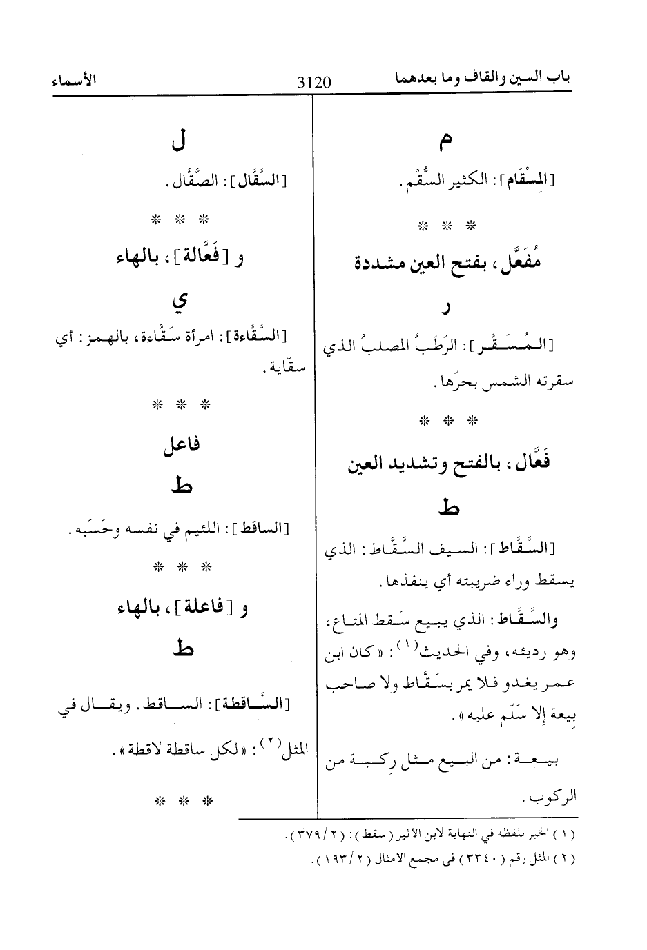 [السَّقَّاط]: السيف السَّقَّاط: الذي يسقط وراء ضريبته أي ينفذها.
