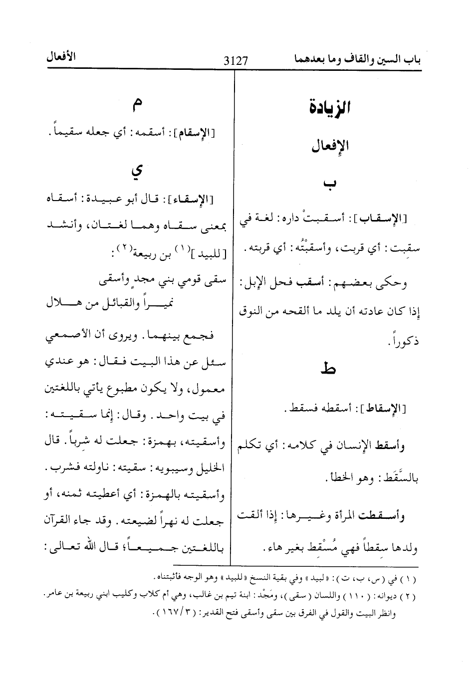 وأسقيته بالهمزة: أي أعطيته ثمنه، أو جعلت له نهراً لضيعته. وقد جاء القرآن باللغتين جميعاً؛ قال الله تعالى: