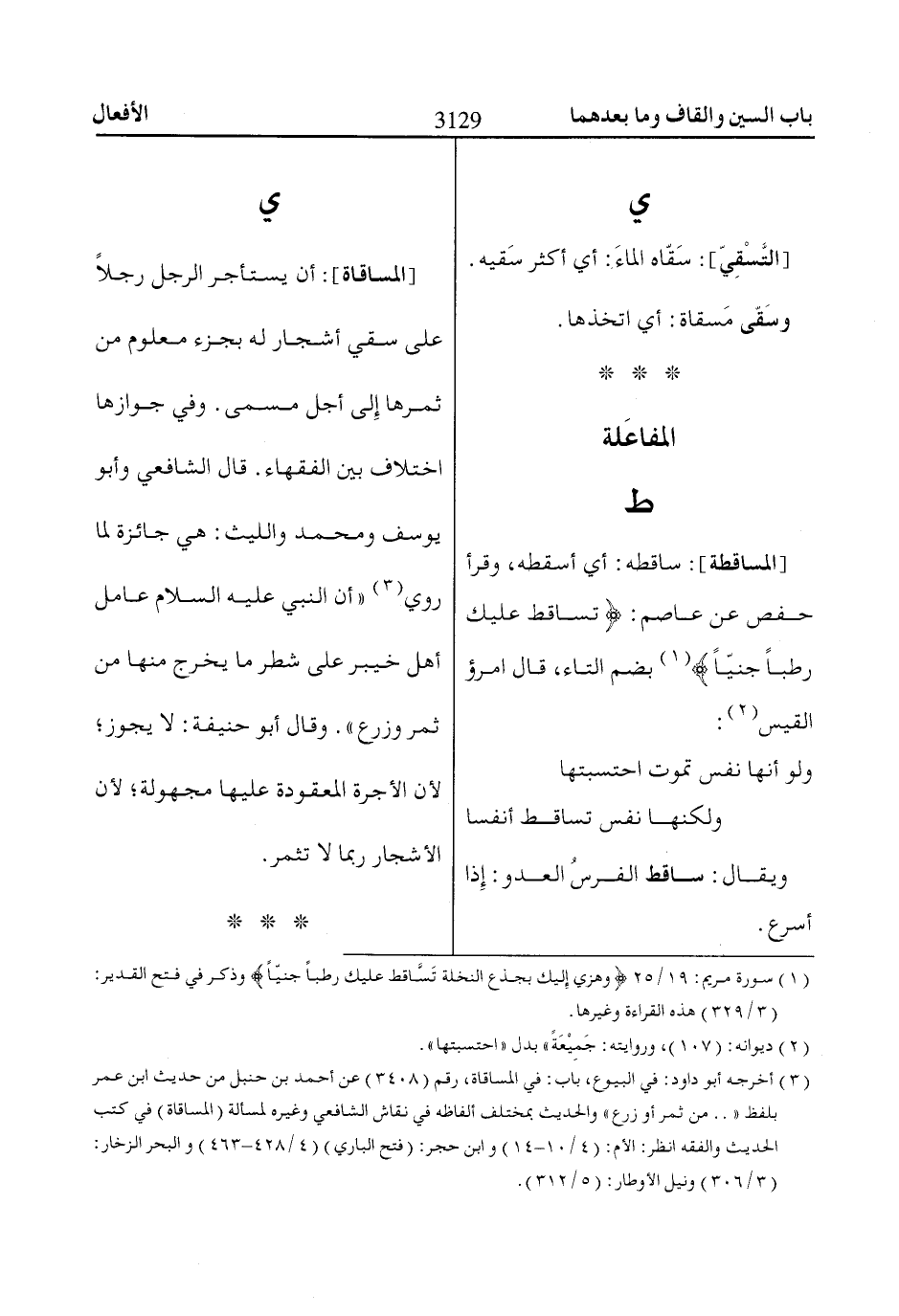 [المساقطة]: ساقطه: أي أسقطه، وقرأ حفص عن عاصم: تُسااقِطْ عَلَيْكِ رُطَباً جَنِيًّا «1» بضم التاء، قال امرؤ القيس «2»:
