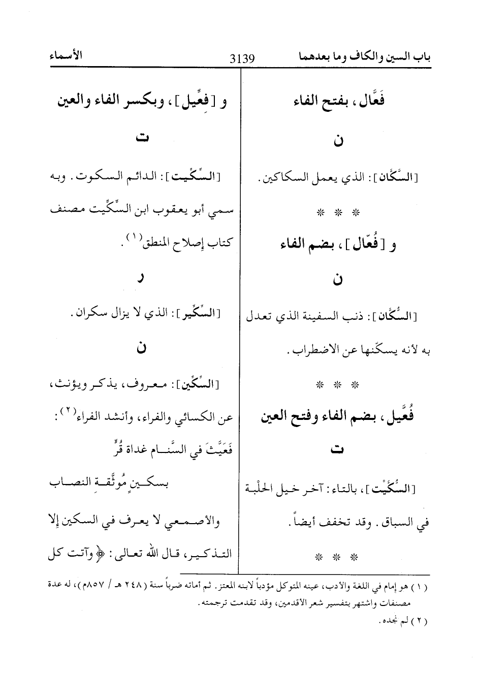 [السِّكِّين]: معروف، يذكر ويؤنث، عن الكسائي والفراء، وأنشد الفراء «2»: