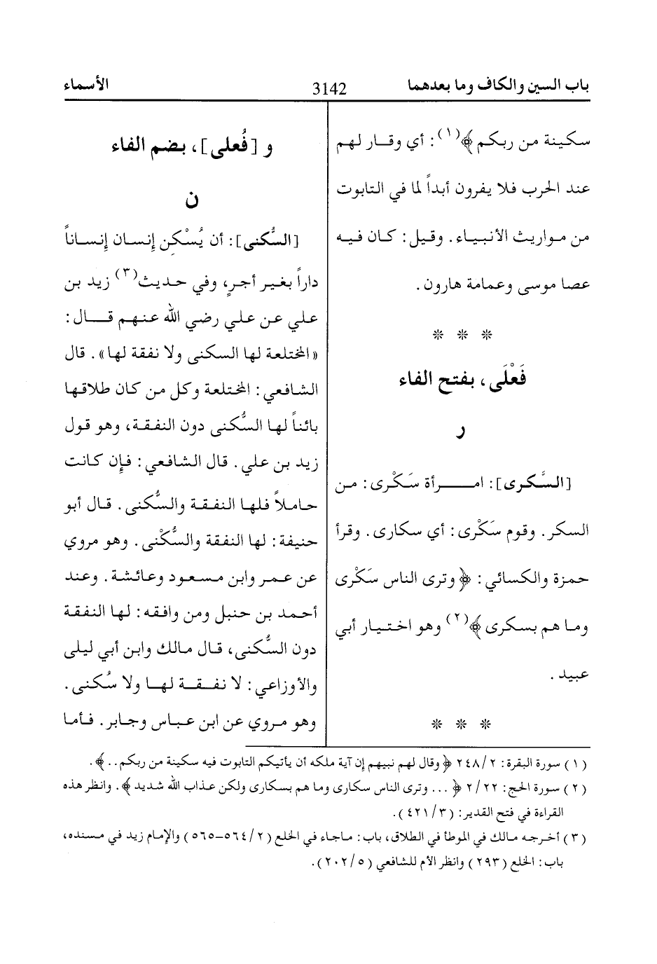 [السَّكرى]: امرأة سَكْرى: من السكر. وقوم سَكْرى: أي سكارى. وقرأ حمزة والكسائي: وترى الناس سكرى وما هم بسكرى «2» وهو اختيار أبي عبيد.