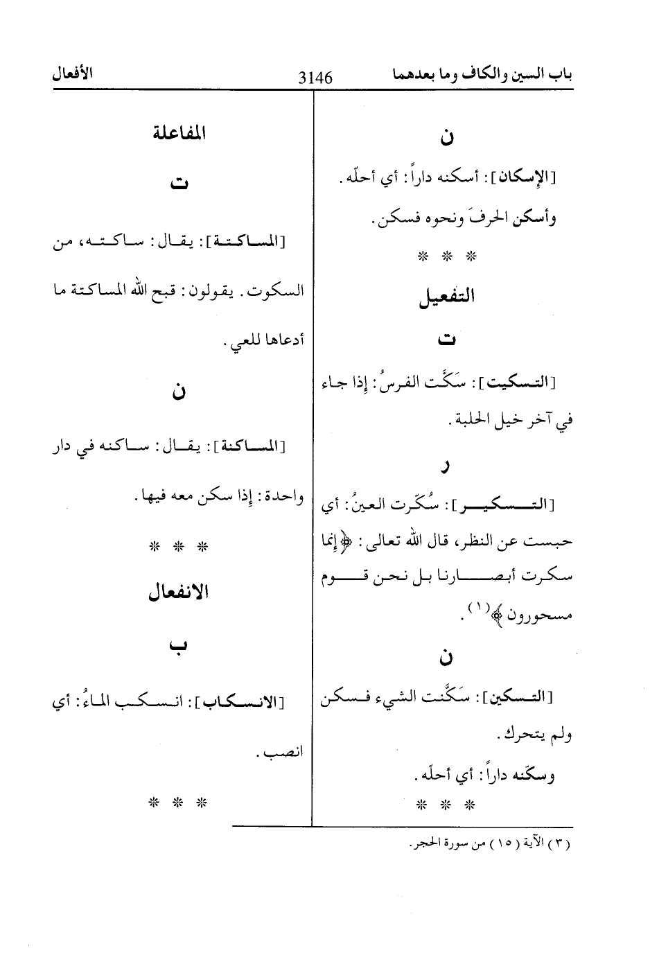 وأسكن الحرفَ ونحوه فسكن.