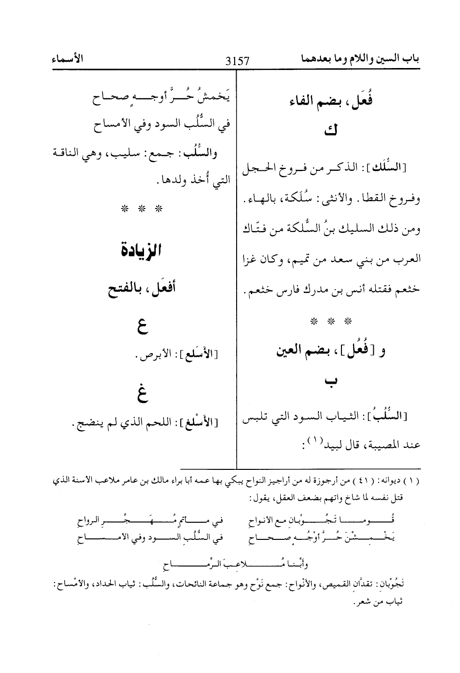 [السُّلُبُ]: الثياب السود التي تلبس عند المصيبة، قال لبيد «1»: