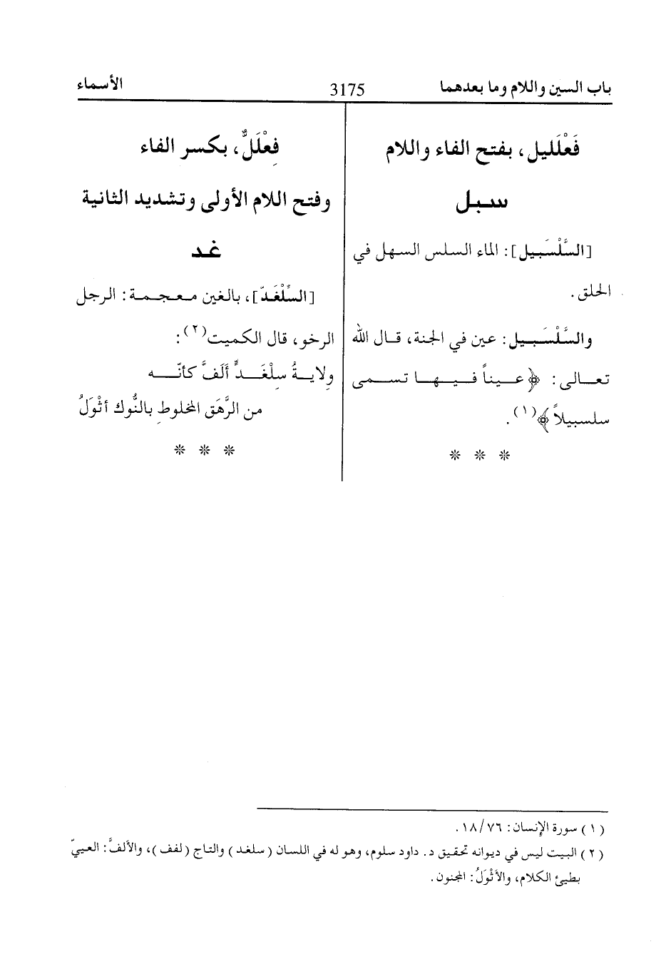 (2) البيت ليس في ديوانه تحقيق د. داود سلوم، وهو له في اللسان (سلغد) والتاج (لفف)، والأَلفَّ: العييّ بطيئ الكلام، والأَثْوَلُ: المجنون.