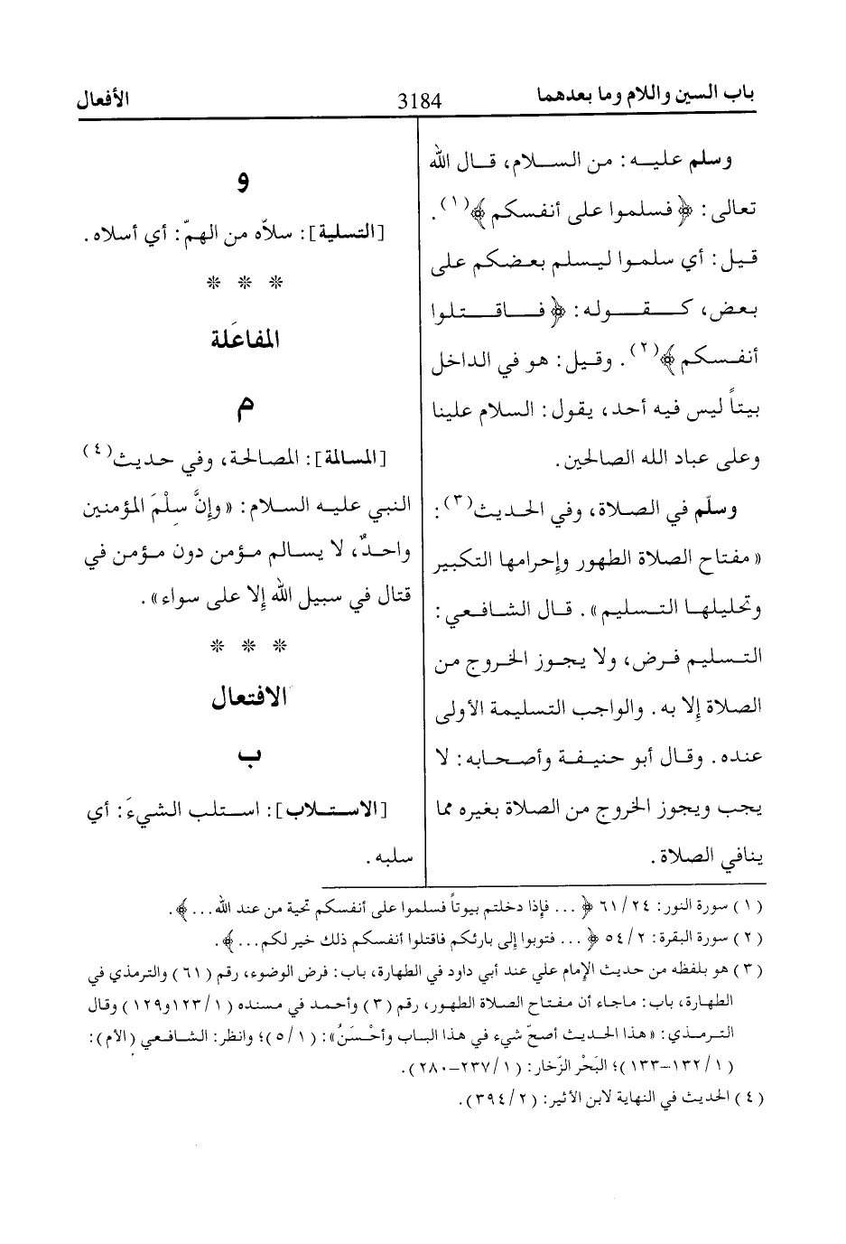 (1) سورة النور: 24/ 61 ... فَإِذاا دَخَلْتُمْ بُيُوتاً فَسَلِّمُوا عَلى أَنْفُسِكُمْ تَحِيَّةً مِنْ عِنْدِ اللّاهِ ....