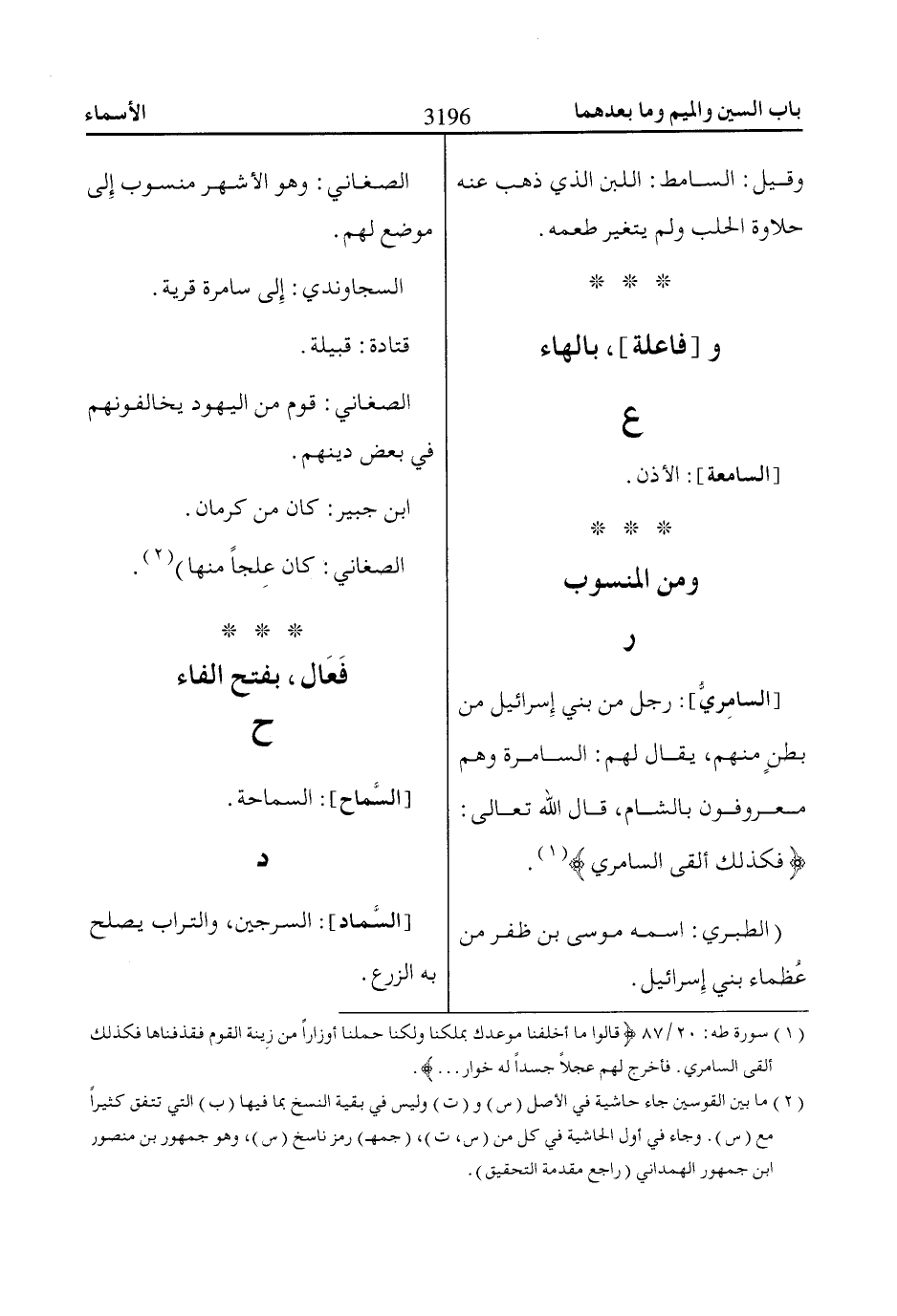 (2) ما بين القوسين جاء حاشية في الأصل (س) و (ت) وليس في بقية النسخ بما فيها (ب) التي تتفق كثيراً مع (س). وجاء في أول الحاشية في كل من (س، ت)، (جمه) رمز ناسخ (س)، وهو جمهور بن منصور ابن جمهور الهمداني (راجع مقدمة التحقيق).