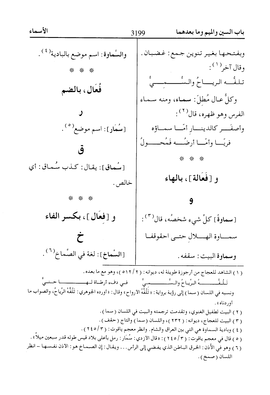 (3) البيت للعجاج، ديوانه: (232)، واللسان (سما) والتاج (حقف).