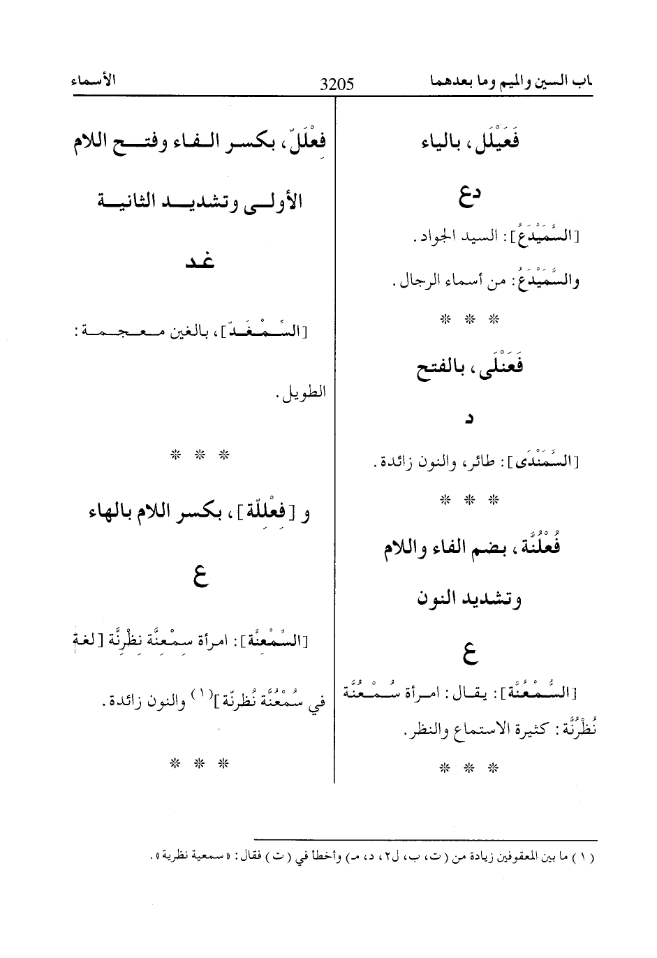 [السِّمْعِنَّة]: امرأة سِمْعِنَّة نِظْرِنَّة [لغة في سُمْعُنَّة نُظرنّة] «1» والنون زائدة.