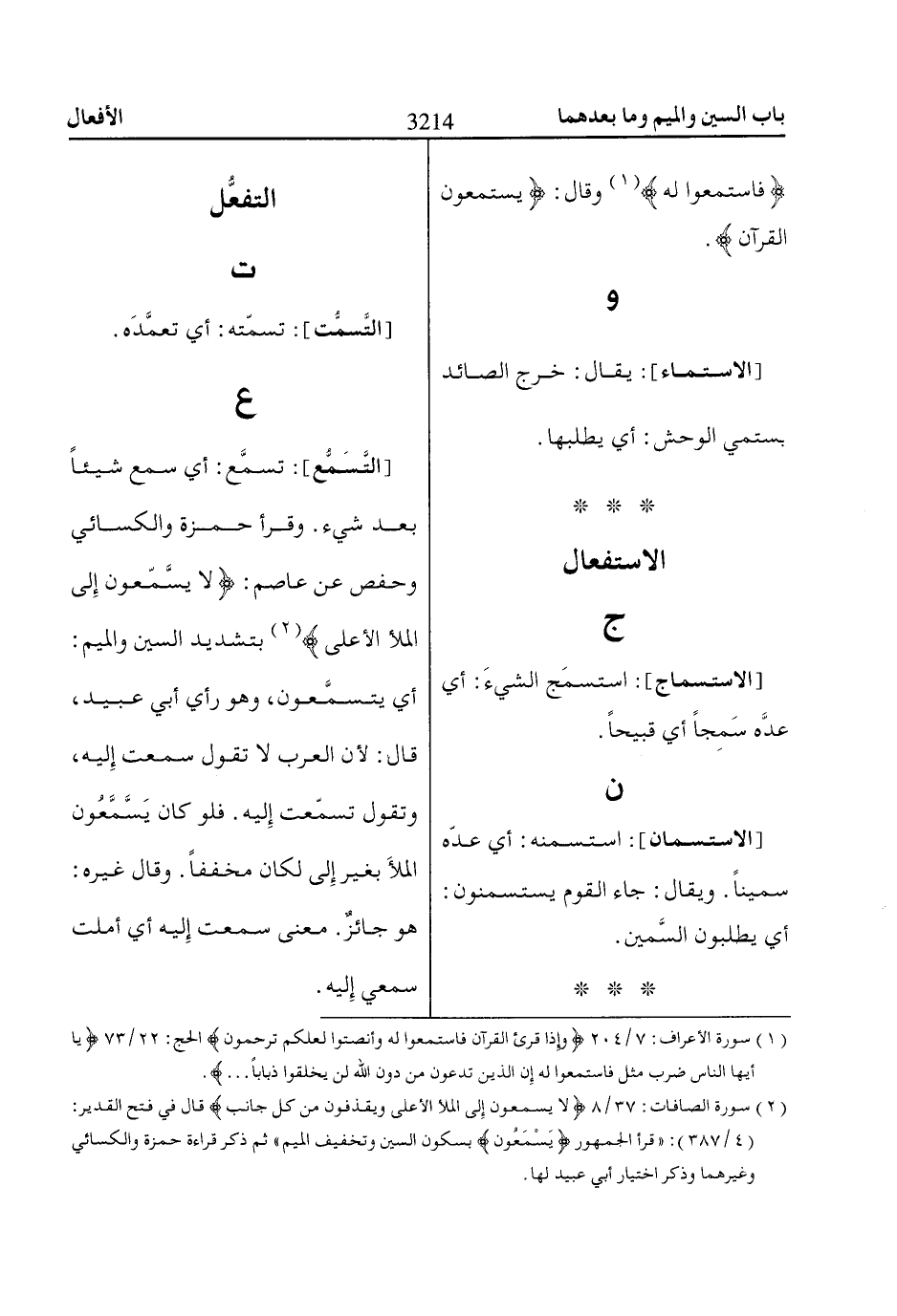 (1) سورة الأعراف: 7/ 204 وَإِذاا قُرِئَ الْقُرْآنُ فَاسْتَمِعُوا لَهُ وَأَنْصِتُوا لَعَلَّكُمْ تُرْحَمُونَ الحج: 22/ 73 ياا أَيُّهَا النّااسُ ضُرِبَ مَثَلٌ فَاسْتَمِعُوا لَهُ إِنَّ الَّذِينَ تَدْعُونَ مِنْ دُونِ اللّاهِ لَنْ يَخْلُقُوا ذُبااباً ....