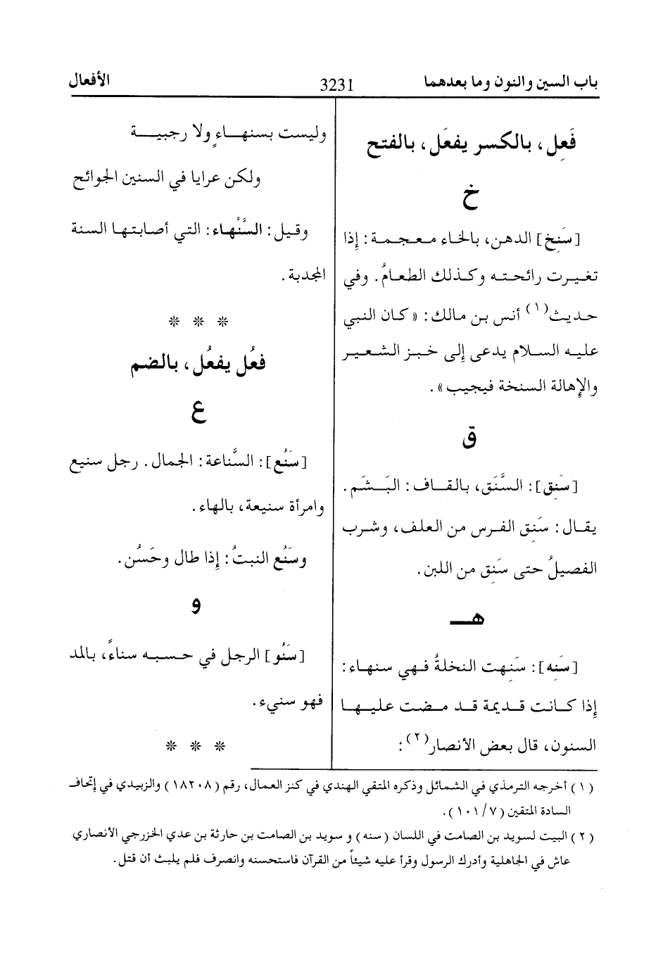 (2) البيت لسويد بن الصامت في اللسان (سنه) وسويد بن الصامت بن حارثة بن عدي الخزرجي الأنصاري عاش في الجاهلية وأدرك الرسول وقرأ عليه شيئاً من القرآن فاستحسنه وانصرف فلم يلبث أن قتل.