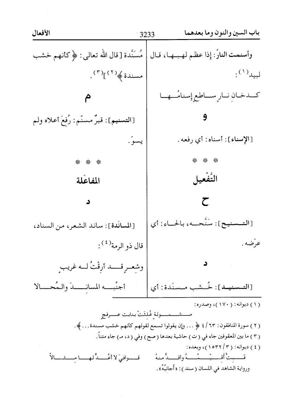 (2) سورة المنافقون: 63/ 4 ... وَإِنْ يَقُولُوا تَسْمَعْ لِقَوْلِهِمْ كَأَنَّهُمْ خُشُبٌ مُسَنَّدَةٌ ....