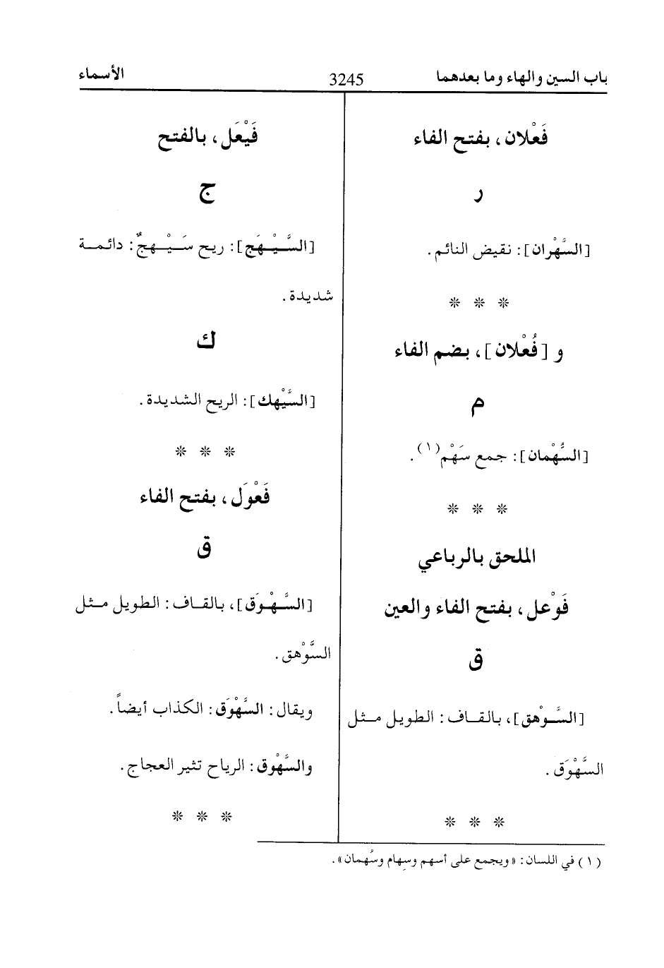 (1) في اللسان: «ويجمع على أسهم وسِهام وسُهمان».