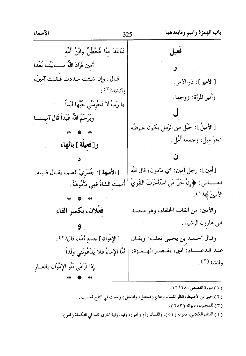 [أَمِين]: رجل أَمين: أي مأمون، قال اللّاه تعالى: إِنَّ خَيْرَ مَنِ اسْتَأْجَرْتَ الْقَوِيُّ الْأَمِينُ «1».