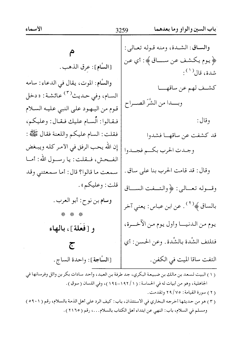 (3) هو من حديثها أخرجه البخاري في الاستئذان، باب: كيف الرد على أهل الذمة بالسلام، رقم (5901) ومسلم في السلام، باب: النهي عن ابتداء أهل الكتاب بالسلام ... ، رقم (2165).