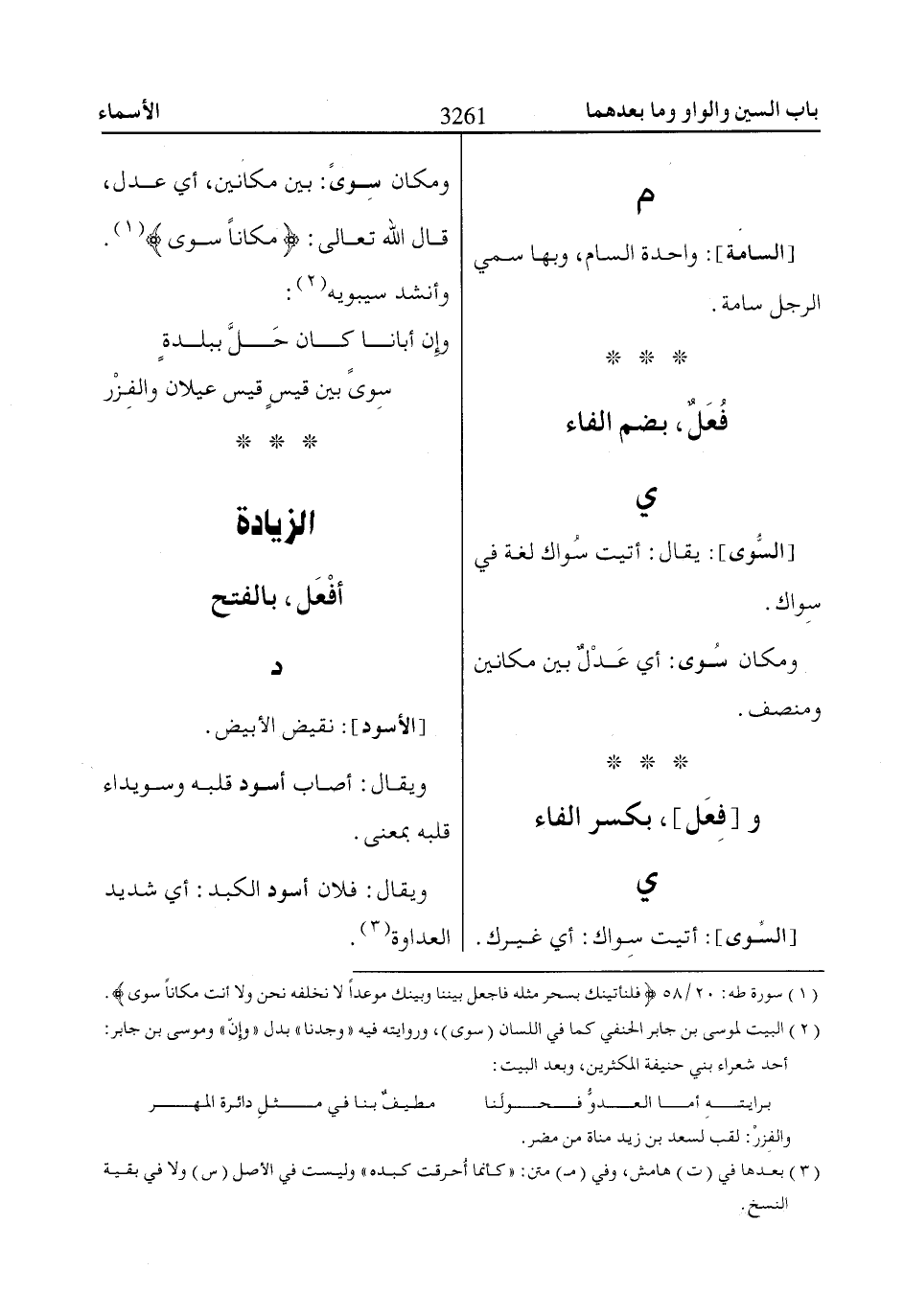 ومكان سِوىً: بين مكانين، أي عدل، قال الله تعالى: مَكااناً سُوىً «1».