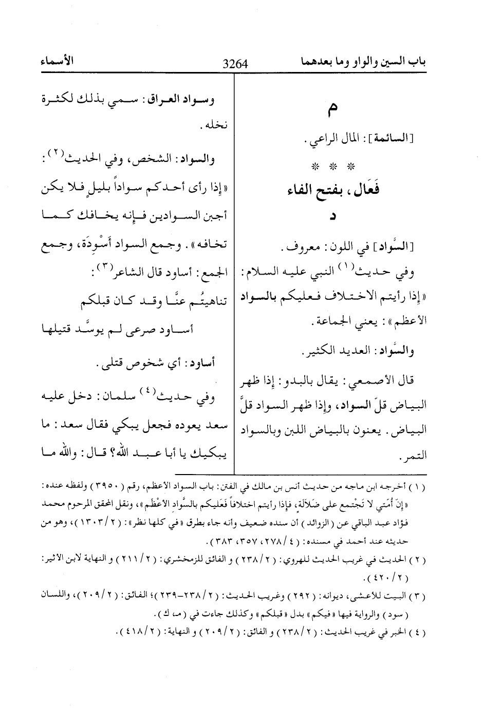 وجمع السواد أَسْوِدَة، وجمع الجمع: أساود قال الشاعر «3»:
