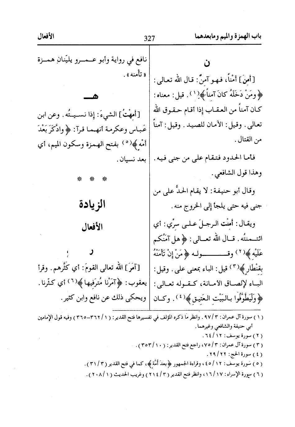 ويقال: أَمِنْت الرجلَ على سِرِّي: أي ائتمنتُه. قال اللّاه تعالى: هَلْ آمَنُكُمْ عَلَيْهِ «2» وقوله مَنْ إِنْ تَأْمَنْهُ بِقِنْطاارٍ «3» قيل: الباء بمعنى على. وقيل: