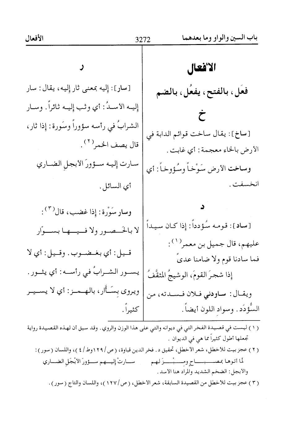 (3) عجز بيت للأخطل من القصيدة السابقة، شعر الأخطل، (ص/ 127)، واللسان والتاج (سور).