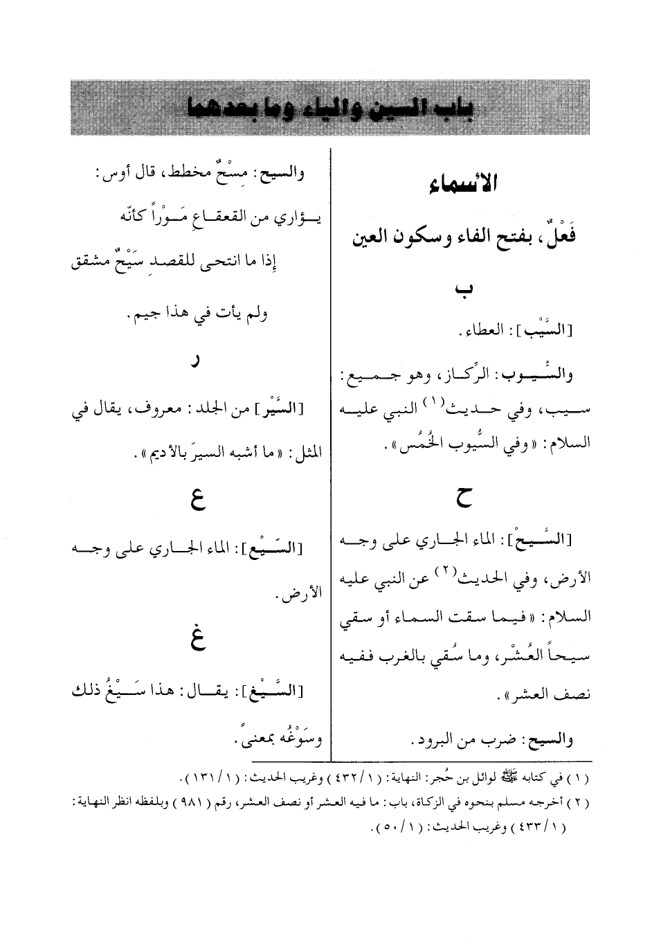 (1) في كتابه صلى الله عليه وسلم لوائل بن حُجر: النهاية: (1/ 432) وغريب الحديث: (1/ 131).