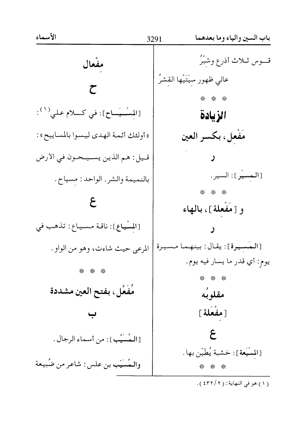 [المِسْياع]: ناقة مسياع: تذهب في المرعى حيث شاءت، وهو من الواو.