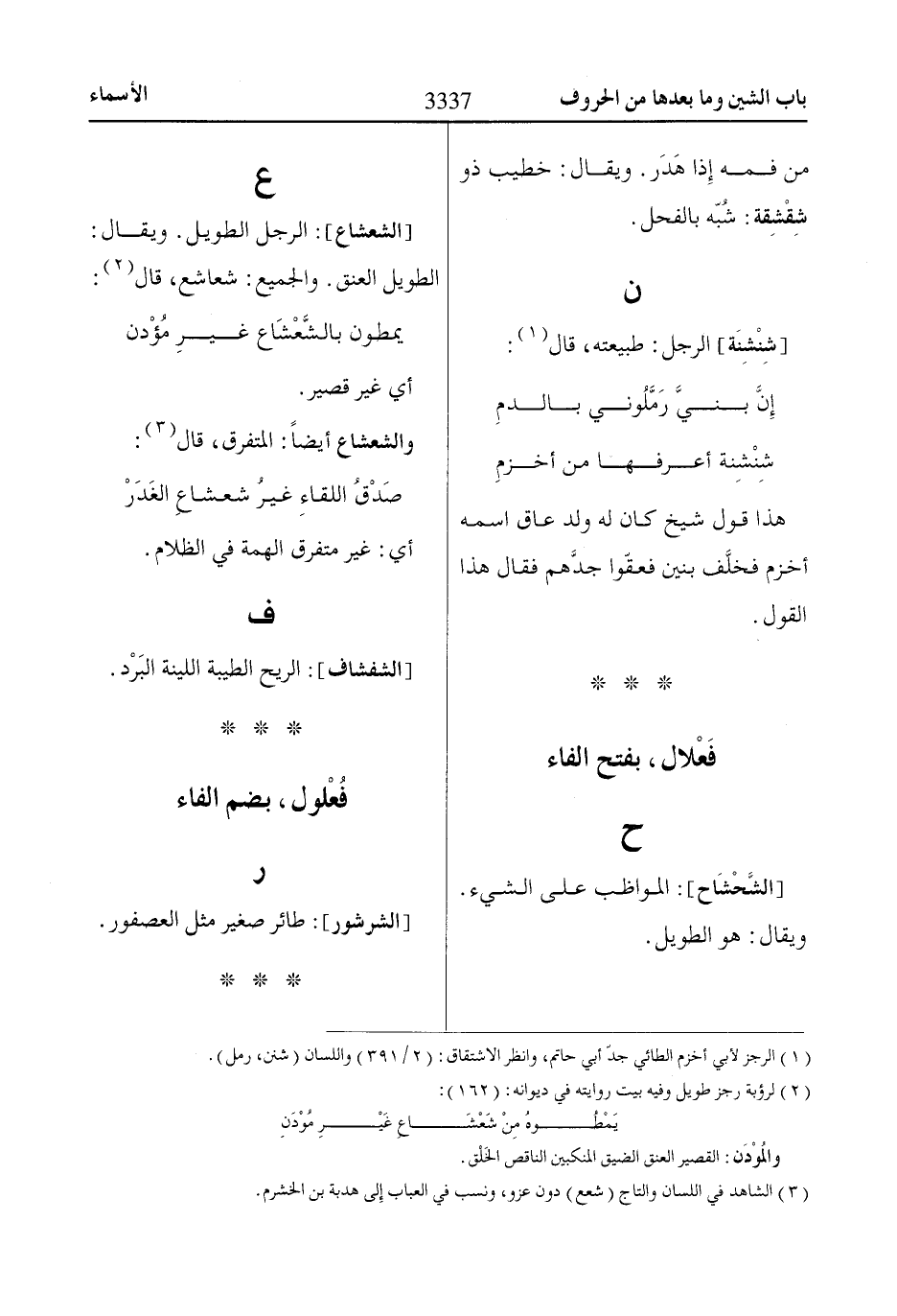 (1) الرجز لأبي أخزم الطائي جدّ أبي حاتم، وانظر الاشتقاق: (2/ 391) واللسان (شنن، رمل).