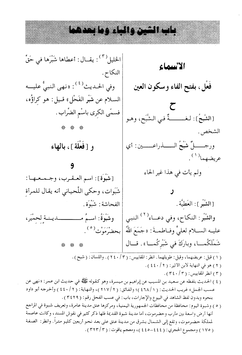 (1) قيل: عريضهما، وقيل: طويلهما. انظر: المقاييس: (3/ 240). واللسان: (شبح).