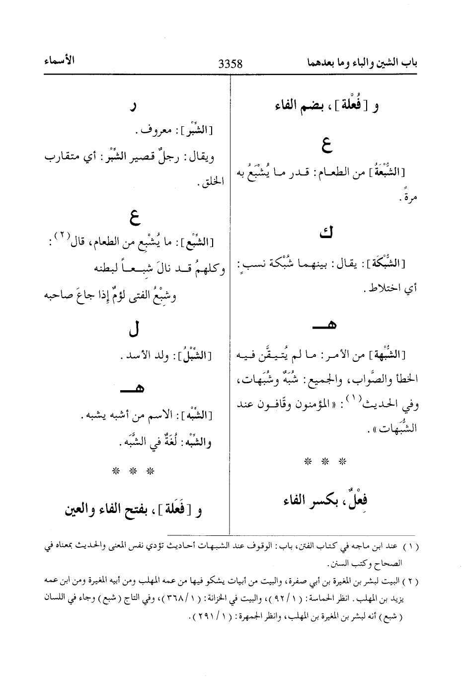 (2) البيت لبشر بن المغيرة بن أبي صفرة، والبيت من أبيات يشكو فيها من عمه المهلب ومن أبيه المغيرة ومن ابن عمه يزيد بن المهلب. انظر الحماسة: (1/ 92)، والبيت في الخزانة: (1/ 368)، وفي التاج (شبع) وجاء في اللسان (شبع) أنه لبشر بن المغيرة بن المهلب، وانظر الجمهرة: (1/ 291).