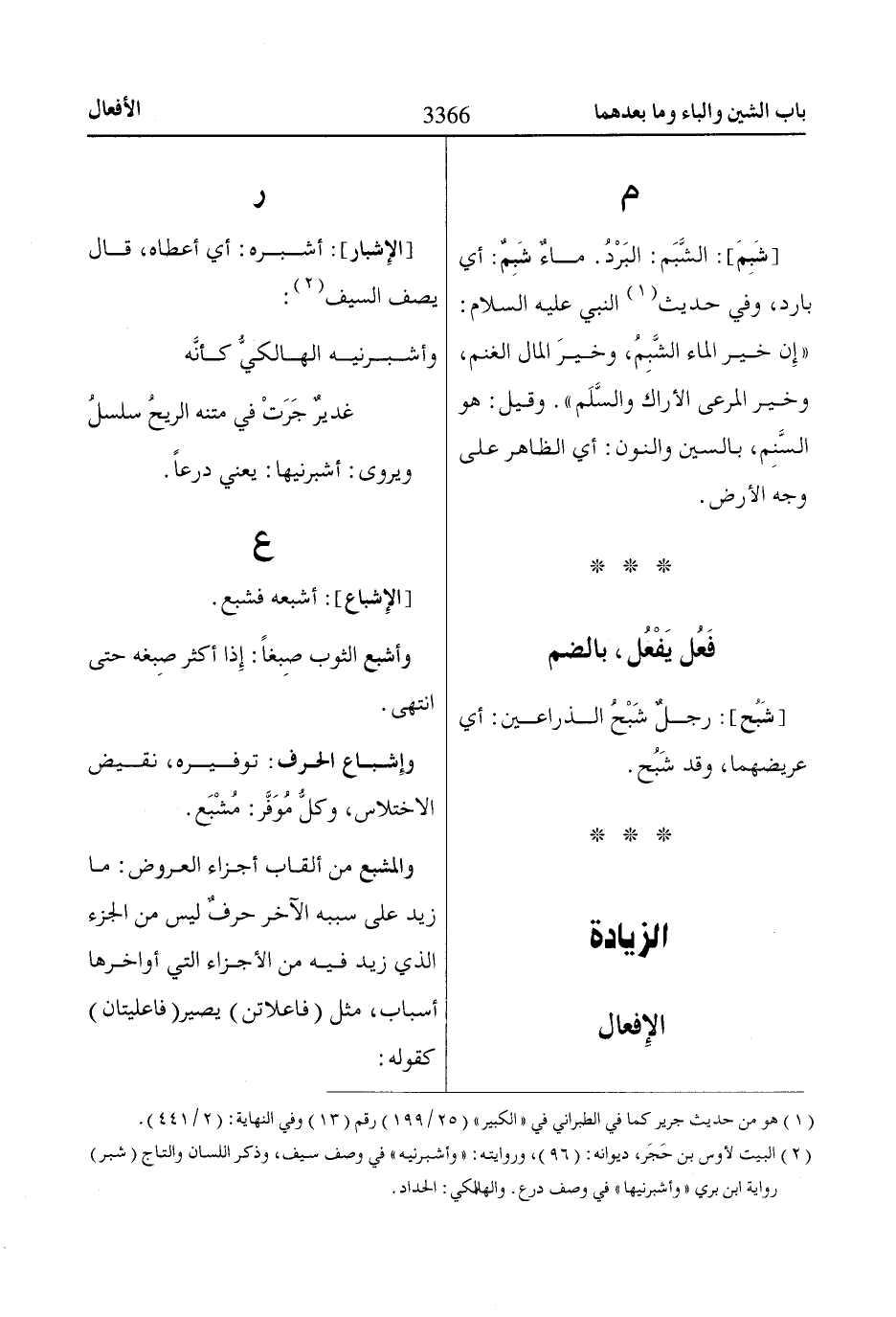 في وصف سيف، وذكر اللسان والتاج (شبر) رواية ابن بري