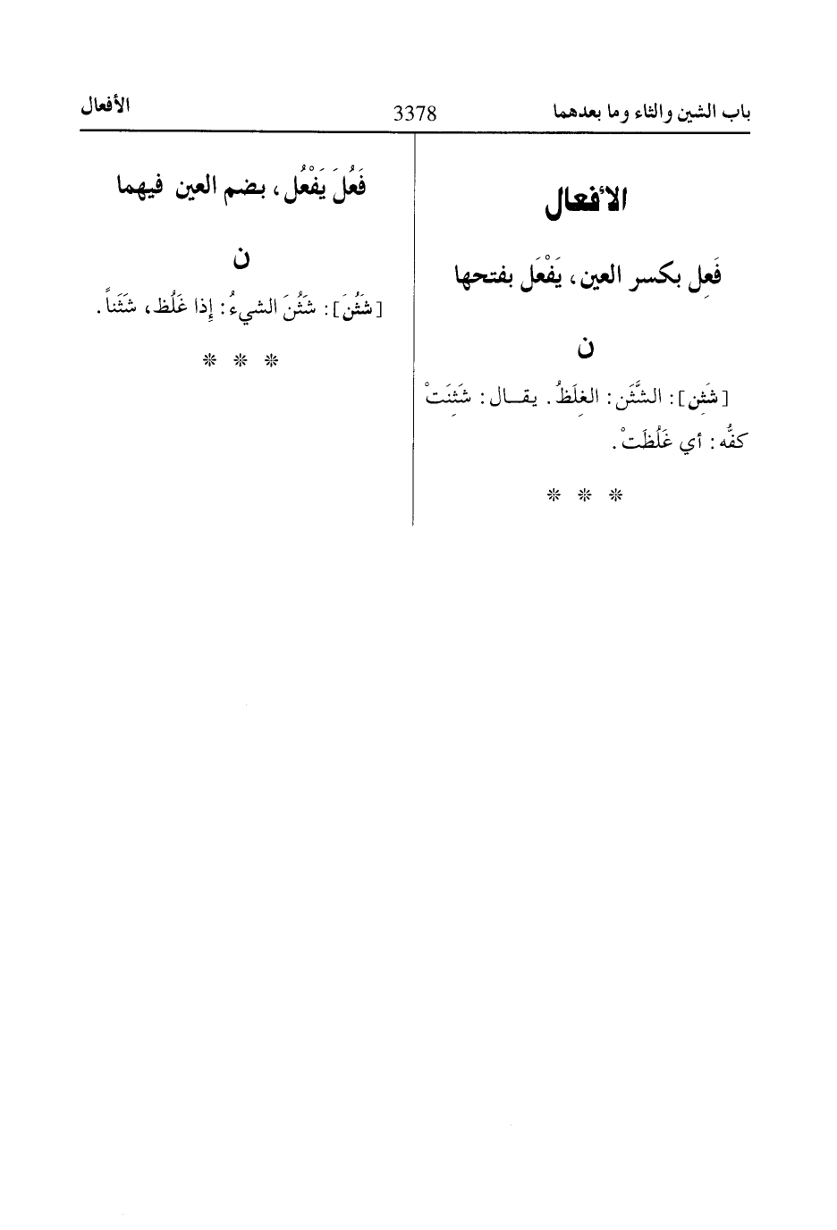 [شَثِن]: الشَّثَن: الغِلَظُ. يقال: شَثِنَتْ كفُّه: أي غَلُظَتْ.