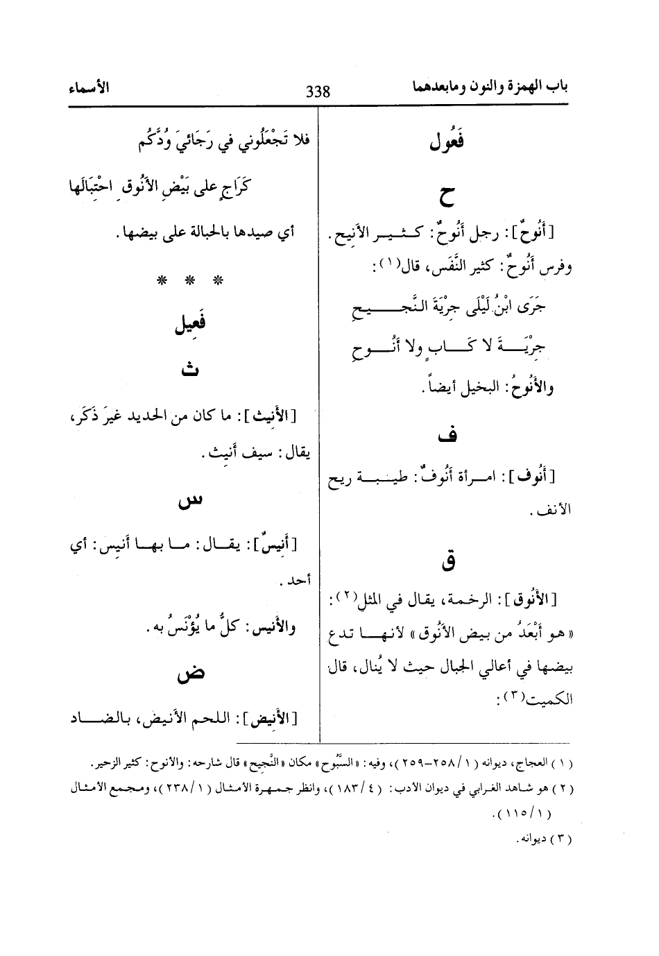 (1) العجاج، ديوانه (1/ 258 - 259)، وفيه: «السَّبُوح» مكان «النَّجِيح» قال شارحه: والأنوح: كثير الزحير.