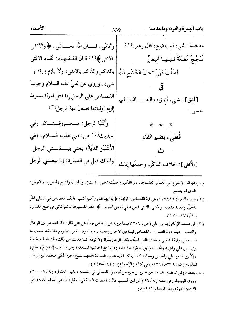 (1) ديوانه: (شرح أبي العباس ثعلب ط. دار الفكر، وأصلَّت بمعنى: أنتنت)، واللسان والتاج (أنض)، والأنيض: