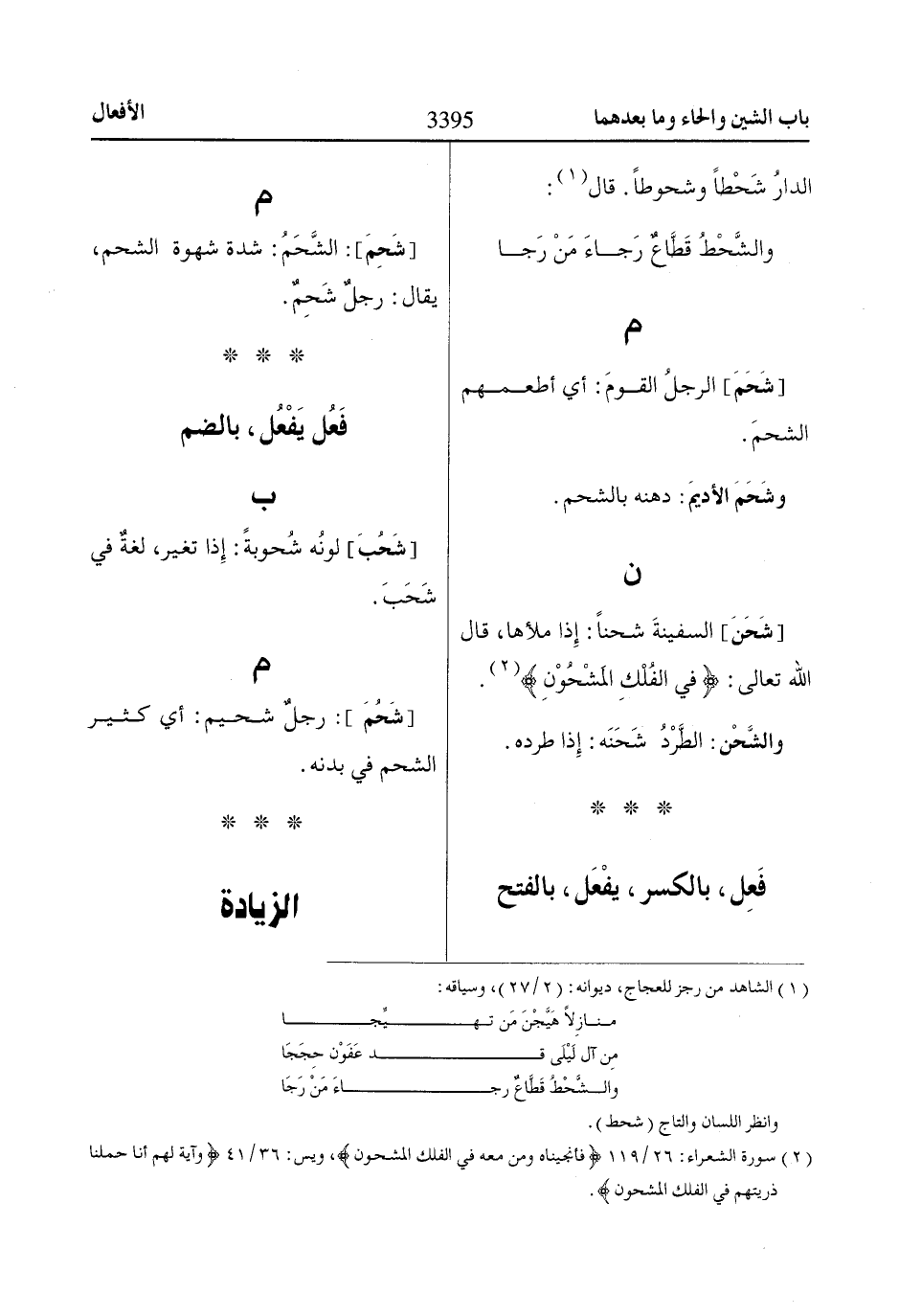[شَحَنَ] السفينةَ شحناً: إِذا ملأها، قال اللّاه تعالى: فِي الْفُلْكِ الْمَشْحُونِ* «2».