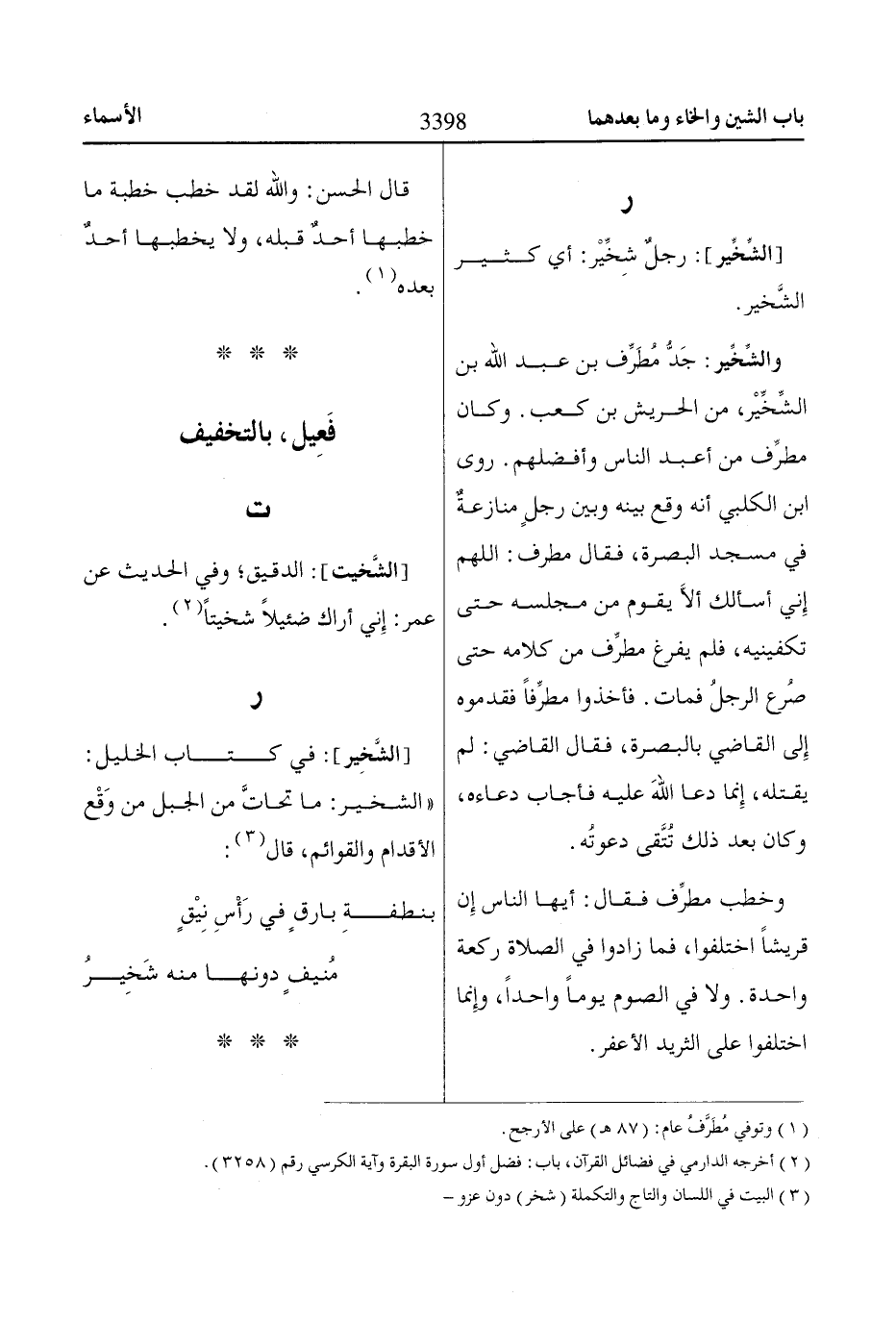 (3) البيت في اللسان والتاج والتكملة (شخر) دون عزو-