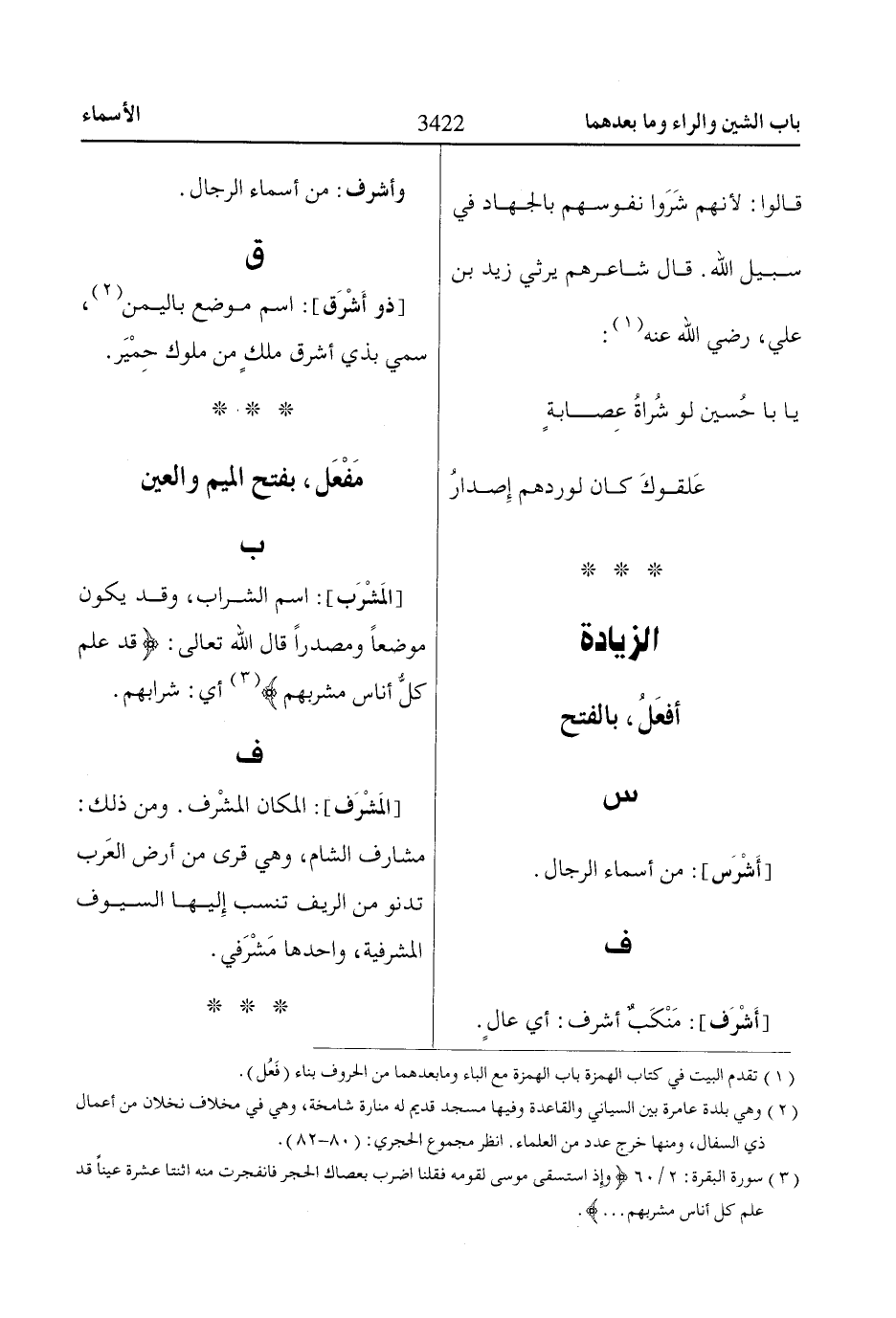 [المَشْرَف]: المكان المشْرف. ومن ذلك: