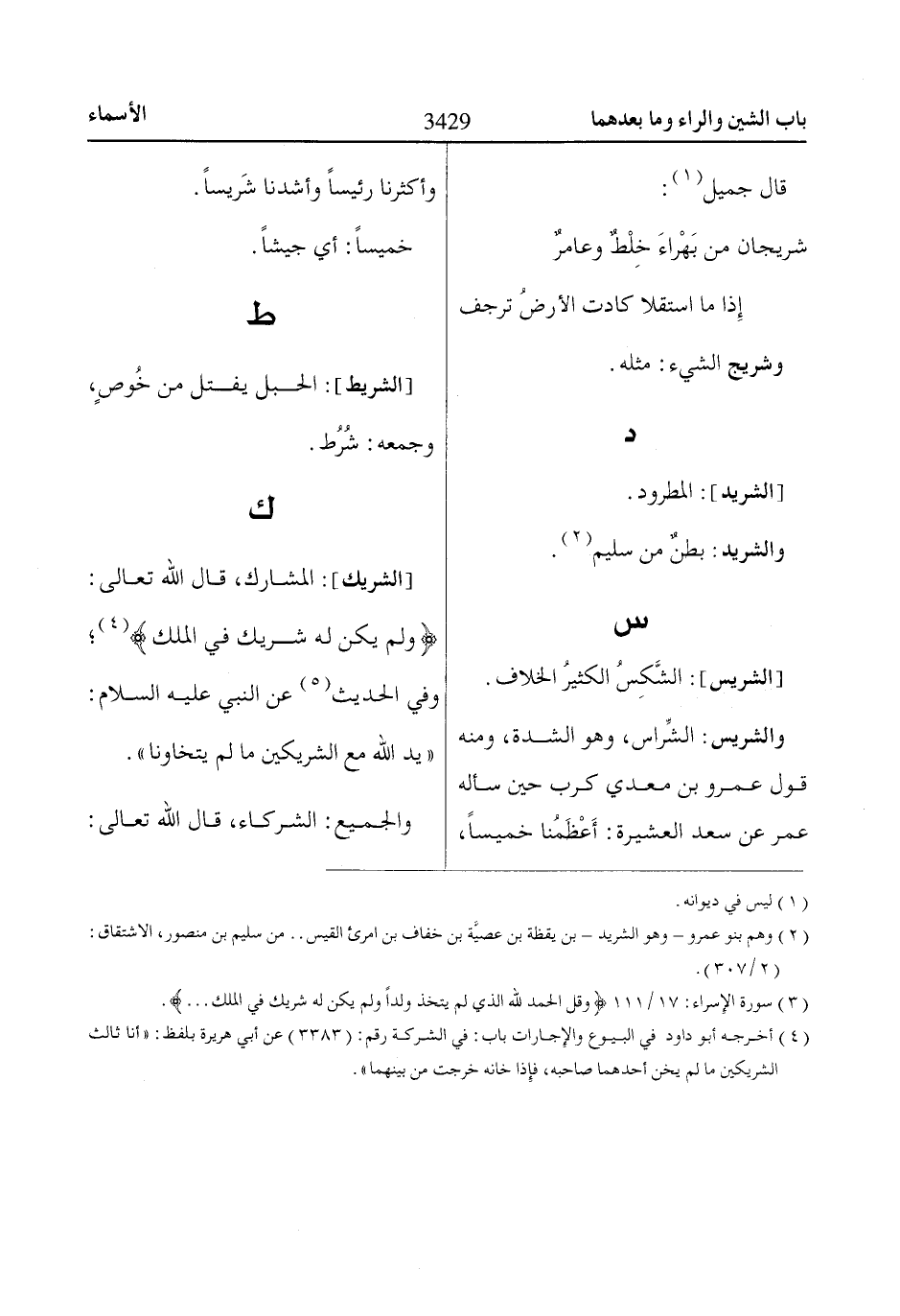 (3) سورة الإِسراء: 17/ 111 وَقُلِ الْحَمْدُ لِلّاهِ الَّذِي لَمْ يَتَّخِذْ وَلَداً وَلَمْ يَكُنْ لَهُ شَرِيكٌ فِي الْمُلْكِ ....
