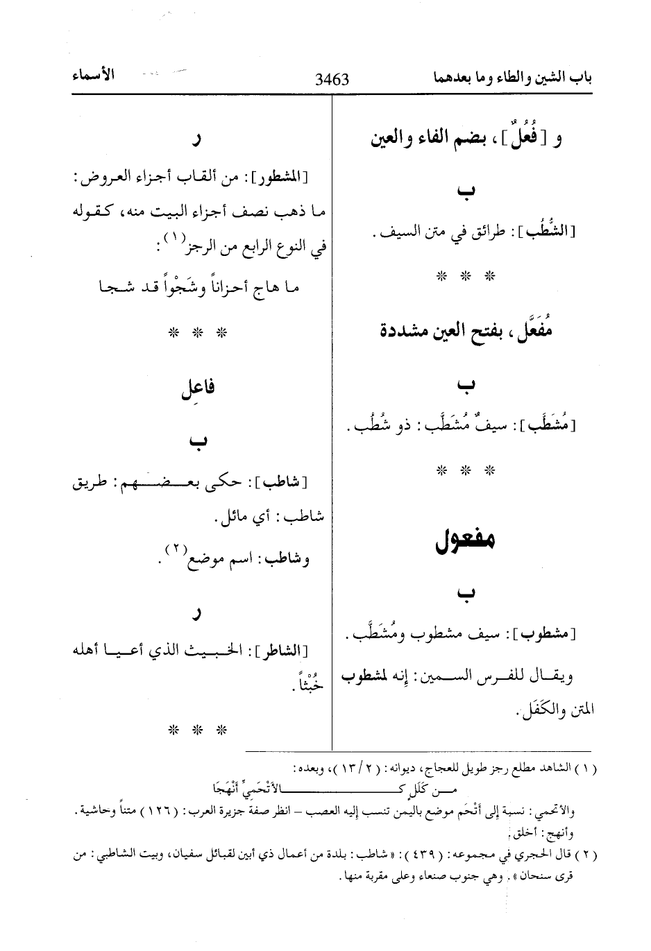 [المشطور]: من ألقاب أجزاء العروض: