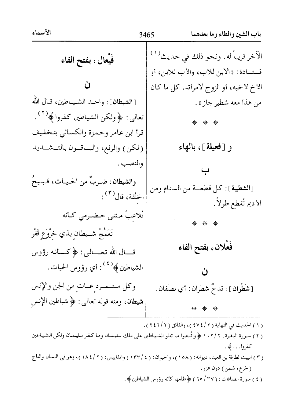 والشيطان: ضربٌ من الحيات، قبيحُ الخِلْقة، قال «3»: