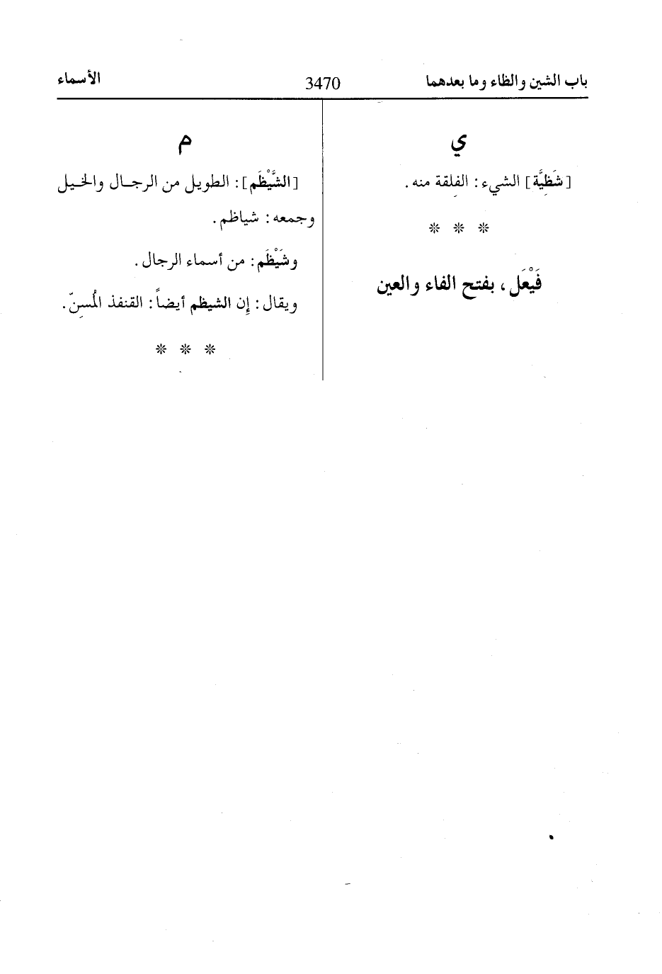 [الشَّيْظَم]: الطويل من الرجال والخيل وجمعه: شياظم.