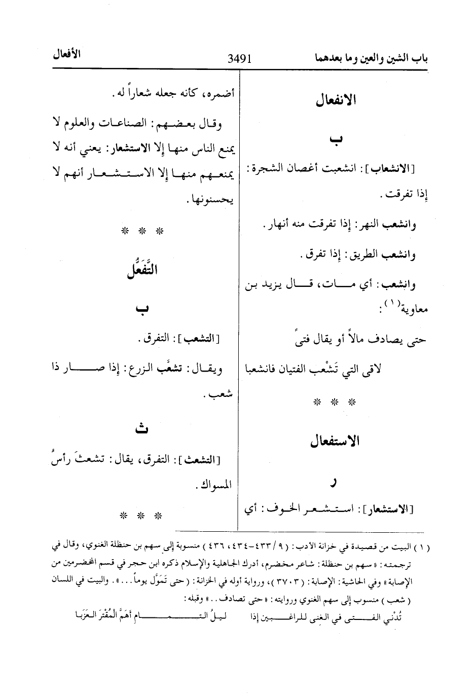 والبيت في اللسان (شعب) منسوب إِلى سهم الغنوي وروايته: