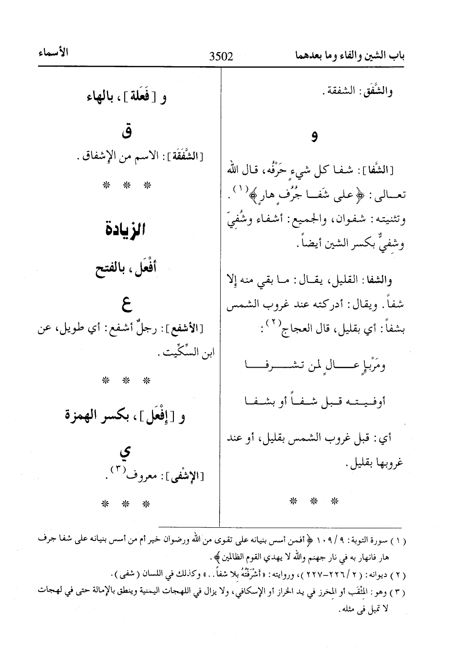 و [الشَّفا]: شفا كل شيءٍ حَرْفُه، قال اللّاه تعالى: عَلى شَفاا جُرُفٍ هاارٍ «1».