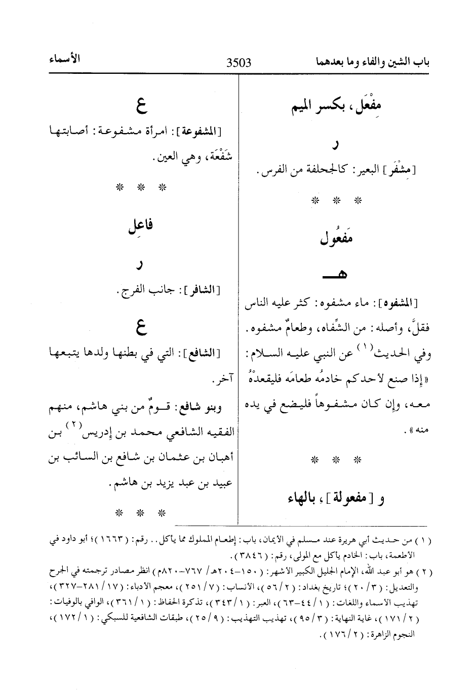 (2) هو أبو عبد اللّاه، الإِمام الجليل الكبير الأشهر: (150 - 204 هـ/ 767 - 820 م) انظر مصادر ترجمته في الجرح والتعديل: (3/ 20)؛ تاريخ بغداد: (2/ 56)، الأنساب: (7/ 251)، معجم الأدباء: (17/ 281 - 327)، تهذيب الأسماء واللغات: (1/ 44 - 63)، العبر: (1/ 343)، تذكرة الحفاظ: (1/ 361)، الوافي بالوفيات: