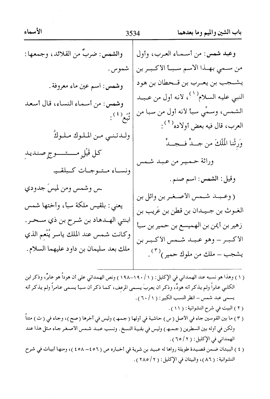 وعبد شمس: من أسماء العرب، وأول من سمي بهذا الاسم سبأ الأكبر بن يشجب بن يعرب بن قحطان بن هود النبي عليه السلام «1»، لأنه أول من عبد الشمس، وسمِّي سبأ لأنه أول من سبا من العرب، قال فيه بعض أولاده «2»: