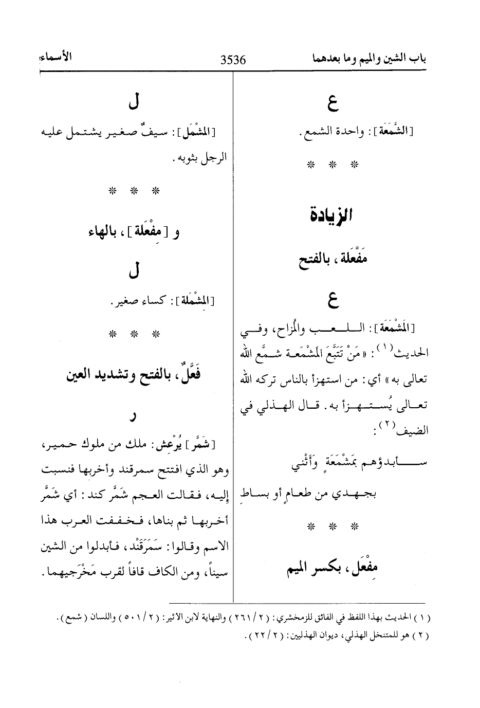 (1) الحديث بهذا اللفظ في الفائق للزمخشري: (2/ 261) والنهاية لابن الأثير: (2/ 501) واللسان (شمع).