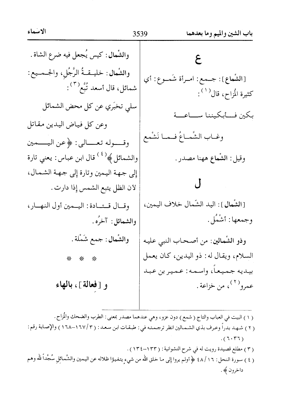 [الشِّمال]: اليد الشّمال خلاف اليمين، وجمعها: أشْمُل.